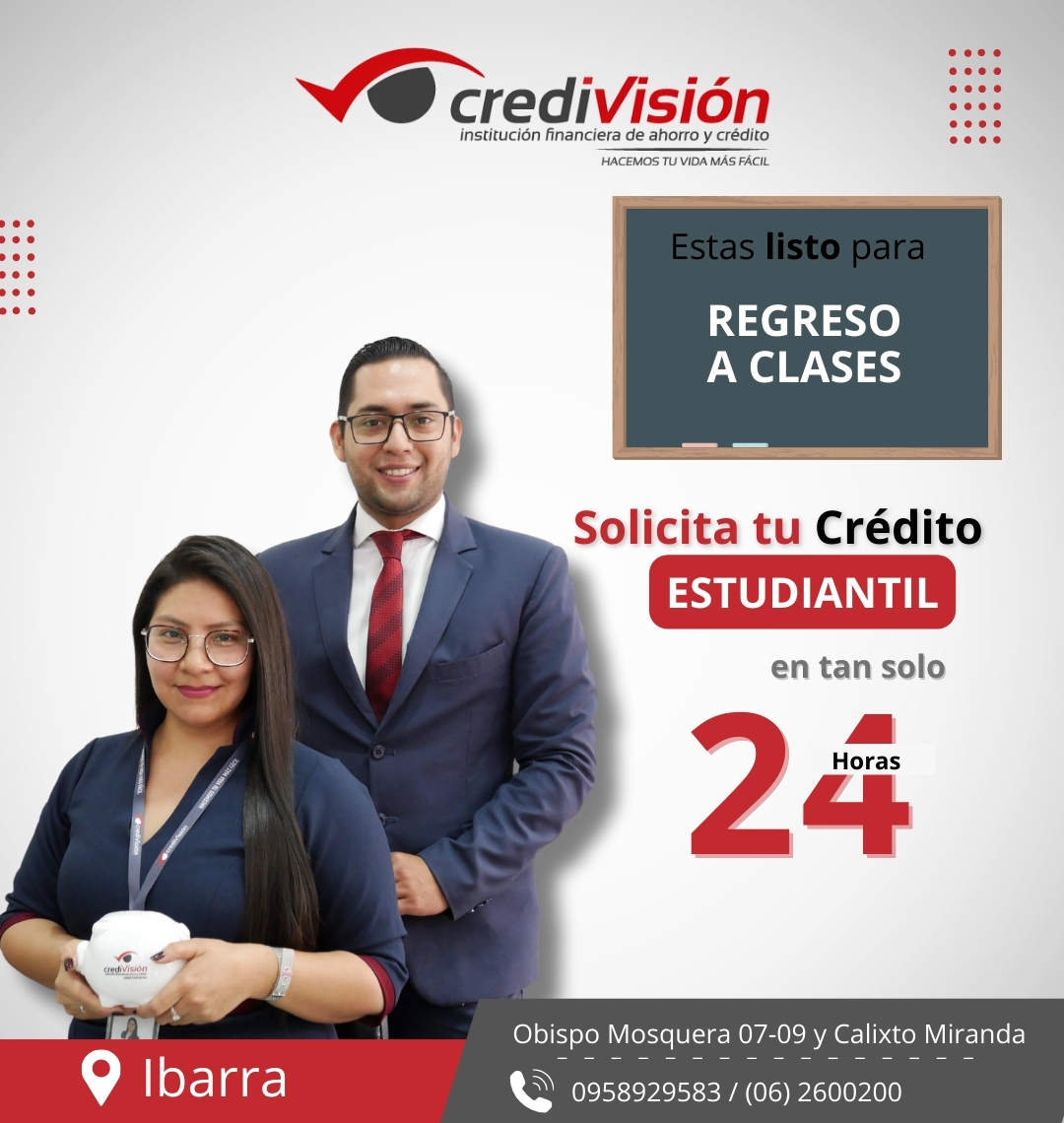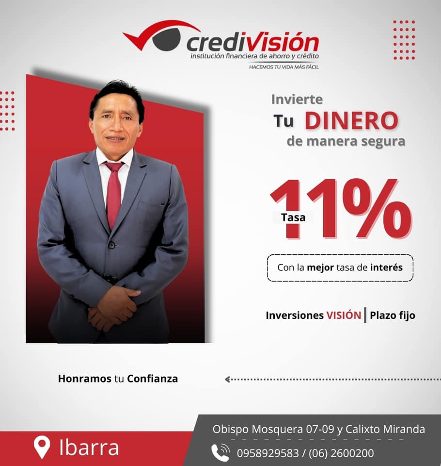 “CREDI VISION ” Institución financiera de ahorro y crédito, presenta un cordial y atento saludo a ustedes, presentándonos como una institución segura, solvente y solidaria, que forma parte del sistema financiero de la ciudad de Ibarra y conociendo que existen sectores de la población que no tienen acceso a la banca formal y que constituyen un motor del crecimiento económico y de la creación de puestos de trabajo locales, nos es grato presentar a su consideración nuestra propuesta de productos y servicios financieros con las que cuenta la institución.